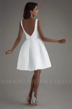 Chic Sleeveless Satin Knee Length Wedding Dress Backless Short Bridal Dress