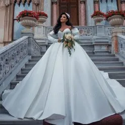 Stylish Glitter Sequins Aline Ball Gown Long Sleeves Bridal Gown