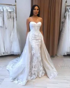 Stunning Sweetheart Sleeveless Mermaid Bridal Dress With Detachable Tulle Train