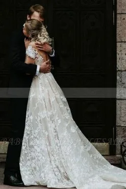 Charming Cap Sleeves Aline Floral Lace Aline Tulle Wedding Dress