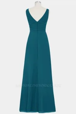 Summer Chiffon A-line Bridesmaid Dress | V-neck Floor Length Maid Of Honor Dress