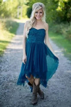 Teal Country Bridesmaid Dresses Lace Top Tiers Chiffon Hi-Lo Party Dresses For Wedding
