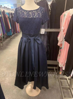 Elegant Chiffon Lace Bridesmaid Dress | Chic Sleeveless Navy Blue Wedding Party Dress