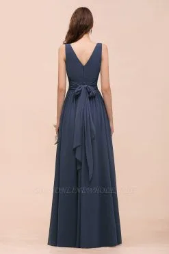 Charming A-line Bridesmaid Dress V-Neck Chiffon Long Wedding Party Dress