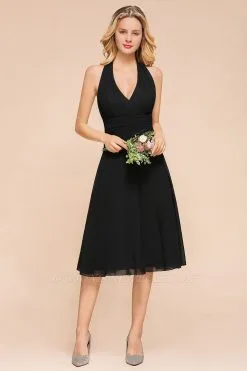 Chiffon A-Line Halter Sleeveless Short Bridesmaid Dress With Ruffles