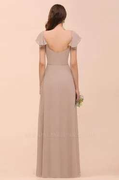 Cap Ruffle Sleeves Bridesmaid Dress With Side Slit