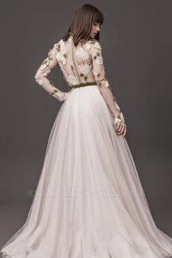 Lace Appliques Long Sleeve Wedding Dresses | Tulle Floor Length Bridal Gowns
