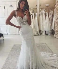 Lace Garden Mermaid Wedding Dress Floral Pattern Slim Sweetheart Bridal Gown