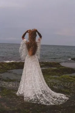 Simple A-line Sweep-Train Chiffon V-neck Lace Backless Wedding Dress