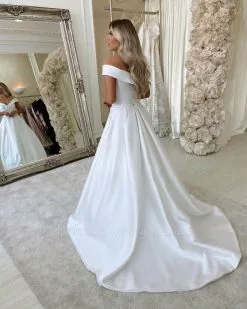 Simple Off-the-Shoulder Sweetheart Sleeveless Ruffles Long Satin Wedding Dress