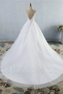 Strapless Lace Appliques Ball Gown Wedding Dresses | Sleeveless Bridal Gowns With Sweep Train