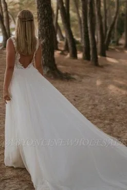Spaghetti Straps V-neck Simple Wedding Dress With Floral Lace