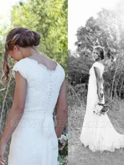 Unique Lace Half Sleeves Boho Wedding Dress | Chic Summer Beach Bridal Gowns