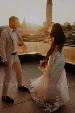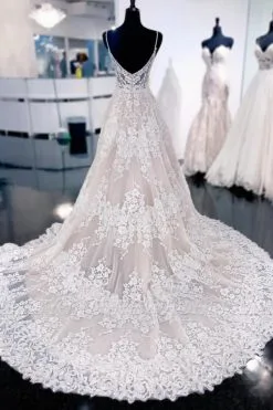 Aline Lace Appliques Tulle Wedding Dress V-Neck Sleeveless Bridal Dress