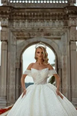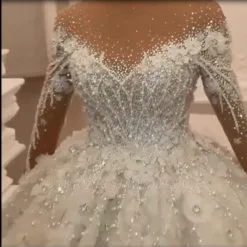 Gorgeous Crystals Floral Bridal Gown With Long Sleeves Glitter Sequins 3D Flower Wedding Dress