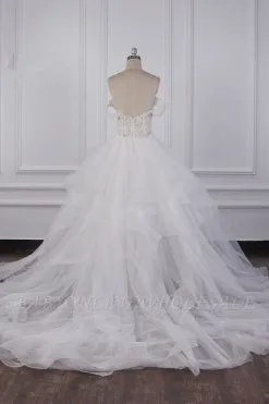 Chic Sweetheart Sleeveless Floor Length Tiered Tulle Wedding Dress With Appliques