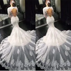 Court Train Mermaid V-neck Lace Long Sleeves Wedding Dresses