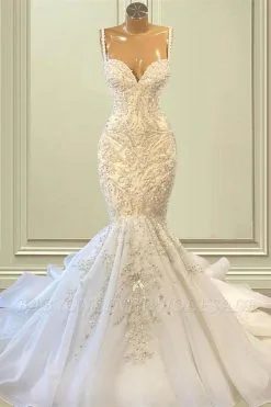 Exquisite Sequins Beading Sweetheart Spaghetti Straps Floor-length Mermaid Wedding Dresses