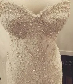 Gorgeous Sweetheart Lace Mermaid Pearls Zipper Wedding Dress
