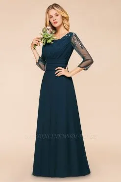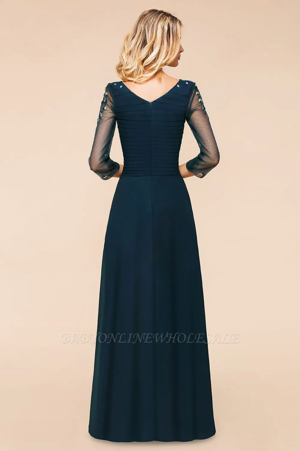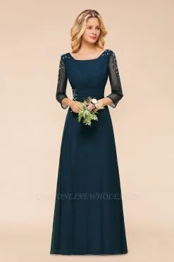 Looking for Bridesmaid Dresses in 100D Chiffon,Tulle, A-line style, and Gorgeous Rhinestone work? Babyonlinewholesale has all covered on this elegant 3/4 Sleeves Aline Long Bridesmaid Dress Rhinestone Floor Length evening Dress.