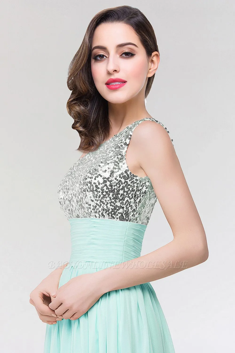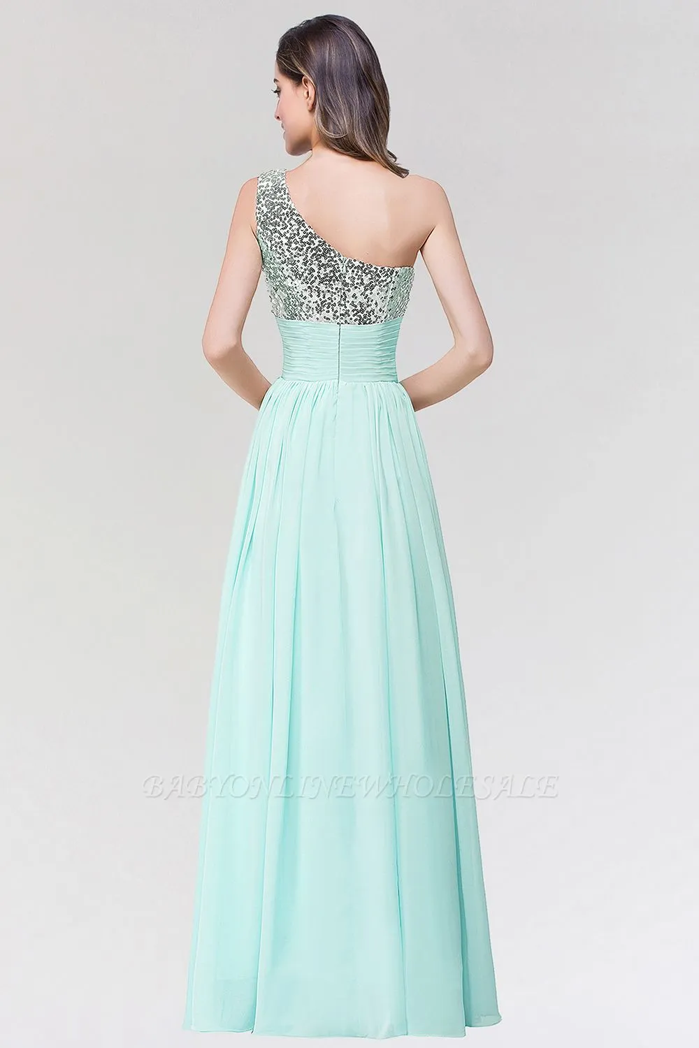 | product name | A-line Chiffon One-Shoulder Sleeveless Floor-Length Bridesmaid Dress with Sequins |