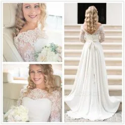 | product name | A Line Half Sleeve Lace Wedding Dress Off Shoulder V Back Bohemian Bridal Gown |