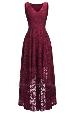 | product name | A-line Hi-lo V-neck Sleeveless Burgundy Lace Dresses |