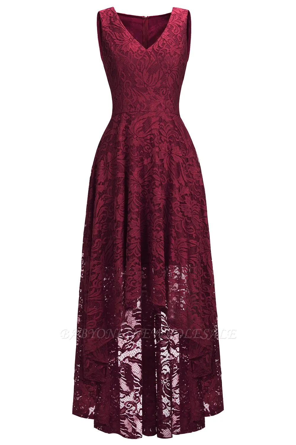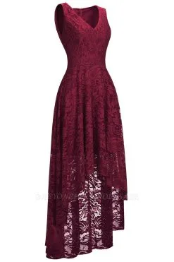 Babyonlinewholesale offers A-line Hi-lo V-neck Sleeveless Burgundy Lace Dresses at a cheap price from Dusty Rose,Red,Burgundy,Dark Navy,Dark Green, Lace to A-line Mini,Asymmetrical them. Stunning yet affordable Sleeveless .