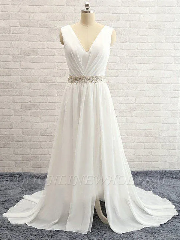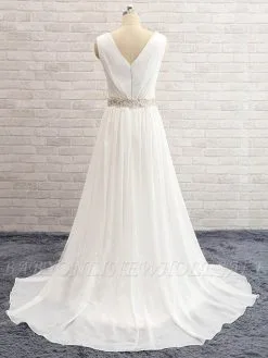 | product name | A-Line Sleeveless V-neck Sweep Train Chiffon Beading Wedding Dresses |