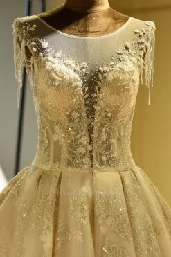 | product name | Amazing Princess Lace-up Sparkly Beading Tulle Ivory Princess Wedding Dress |
