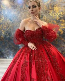 Be the first to review “Amazing Red Sweetheart Sleeves Ball Gown With Floral Appliques” Cancel reply