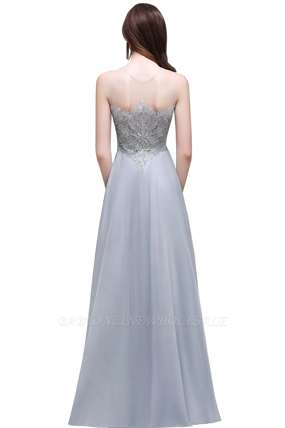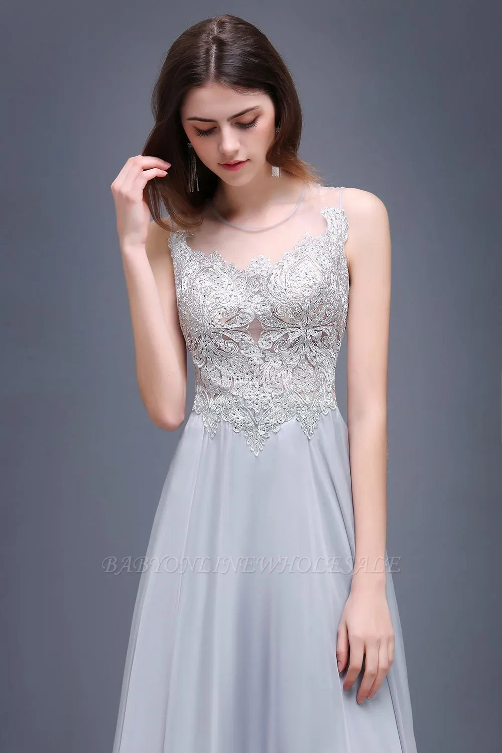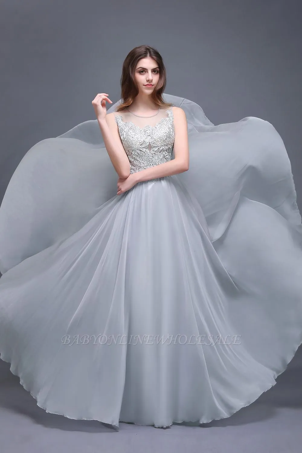 Babyonlinewholesale offers AUBRIELLA | A-line Floor Length Chiffon Prom Dress With Appliques at a cheap price from Silver, 100D Chiffon,Lace to A-line Floor-length hem. Stunning yet affordable Sleeveless Bridesmaid Dresses.