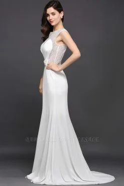 Babyonlinewholesale offers AYLEEN | Mermaid Scoop White Chiffon Evening Dress With Beadings at a cheap price from White,Ivory, 100D Chiffon to Mermaid Floor-length hem. Stunning yet affordable Sleeveless Evening Dresses.