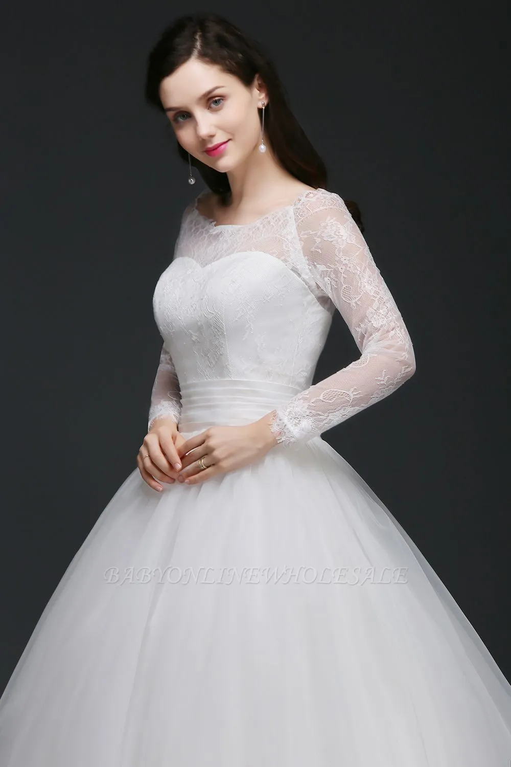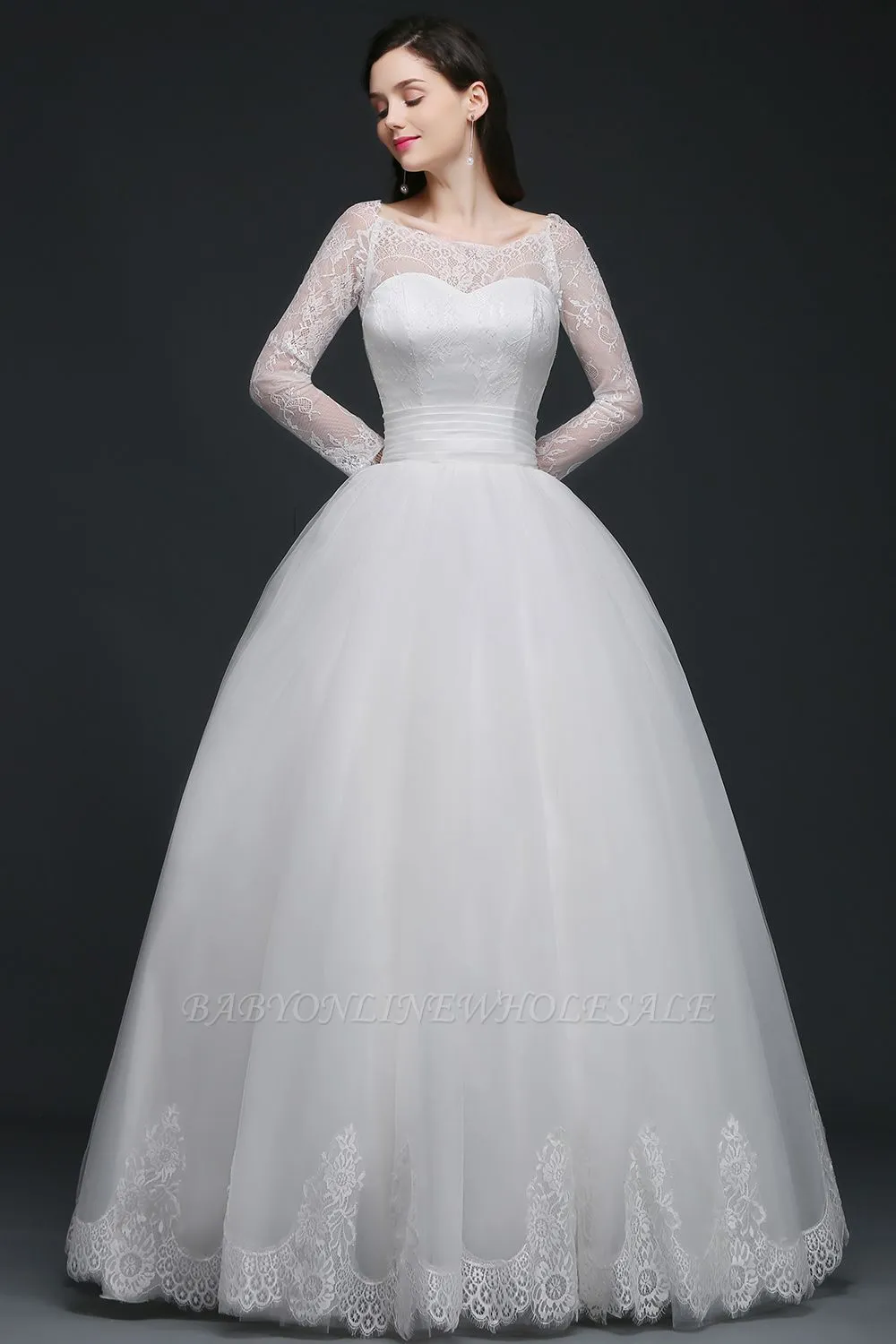 This beautiful AZARIA | Princess Scoop Tulle White Wedding Dress With Lace will make your guests say wow. The Scoop bodice is thoughtfully lined, and the Floor-length skirt with Lace to provide the airy, flatter look of Tulle.