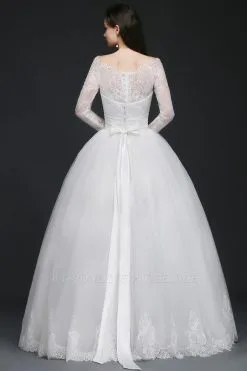 Sleeveless Ball Gown Lace Court Train Tulle Off-the-Shoulder Wedding Dresses