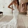 Mermaid Spaghetti Sleeveless Appliqued Lace Court Train Wedding Dresses