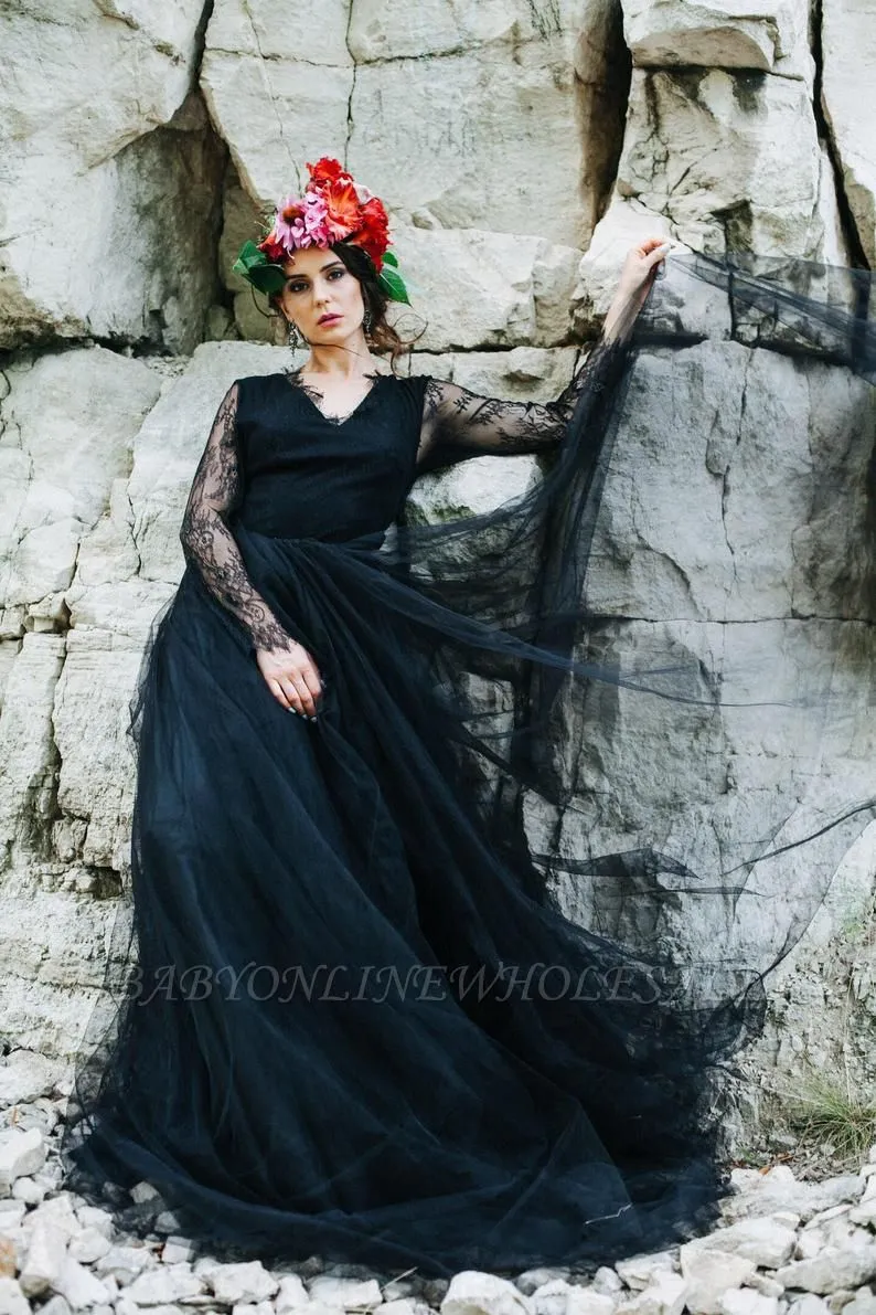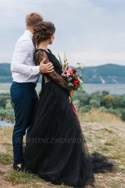 Babyonlinewholesale offers Black Lace Long Sleeves Wedding Dress Tulle Aline Floor Length Bridal Dress at a good price from Same as Picture,White,Ivory,Champagne,Black,Tulle to Princess Floor-length them. Stunning yet affordable Long Sleeves .