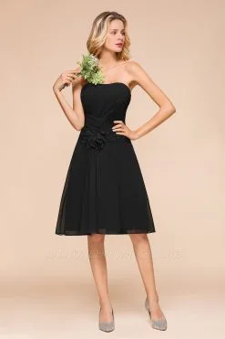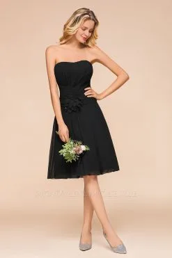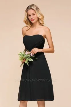 Looking for Bridesmaid Dresses in 100D Chiffon, A-line style, and Gorgeous Draped work? Babyonlinewholesale has all covered on this elegant Black Sleeveless Chiffon Short Wedding Party Dress Knee Length.