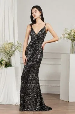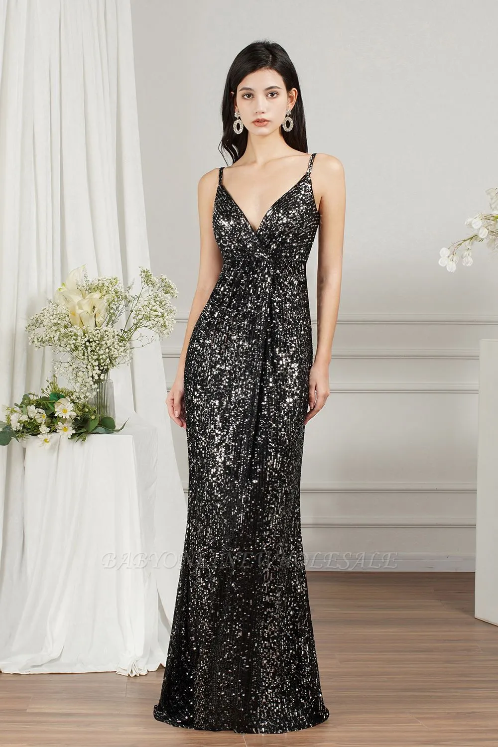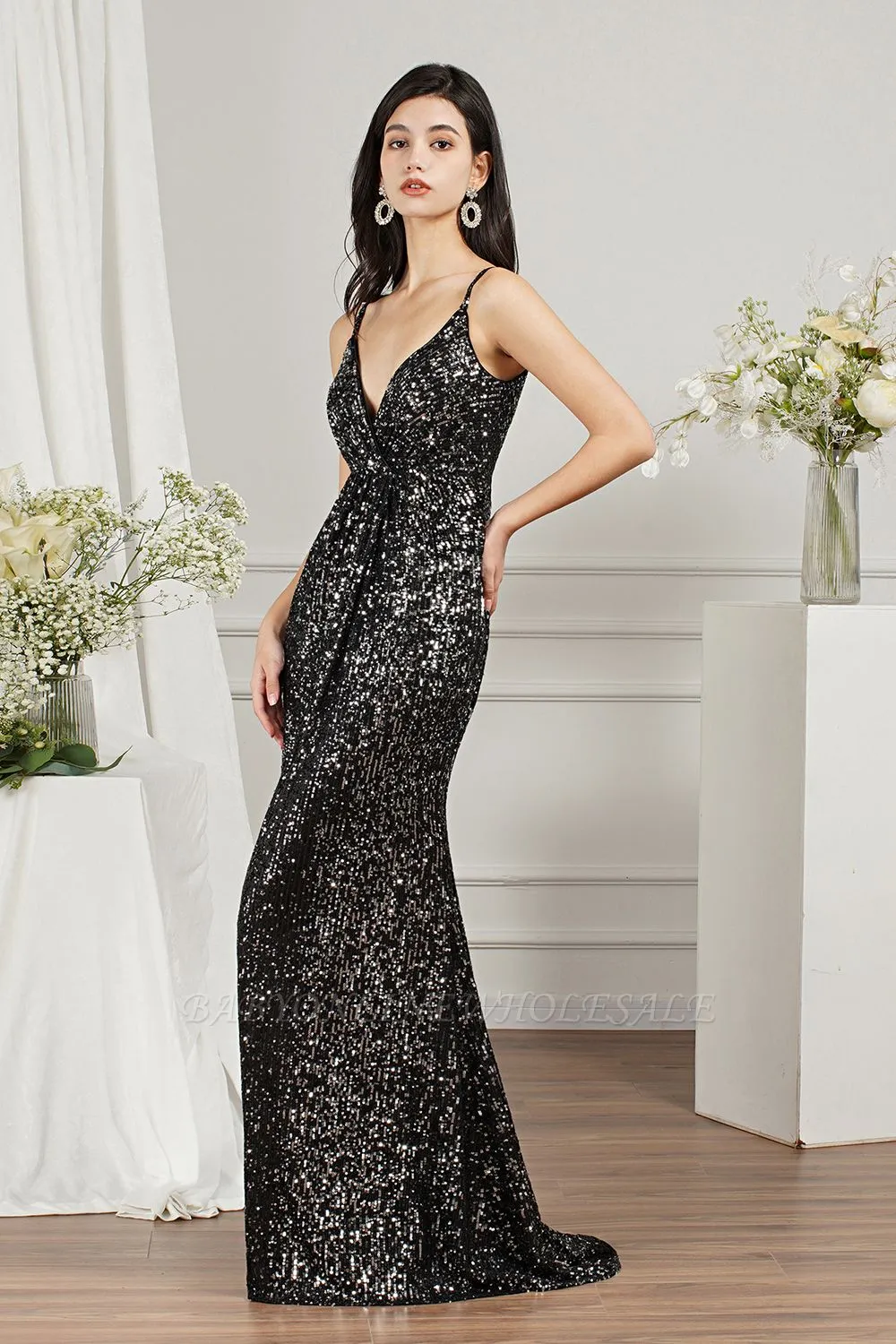 Buy you Black Sparkly Späghetti Strap Sleeveless Long Meramid Sequins Prom Dress online with babyonlinewholesale.com