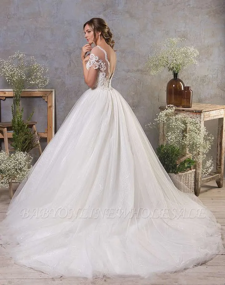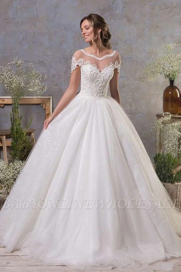 Looking for in Tulle, A-line style, and elegant Lace,Pearls work? Babyonlinewholesale has all covered on this unique Boho Cap Sleeves White Alne Bridal Dress Tulle Wedding Dress.
