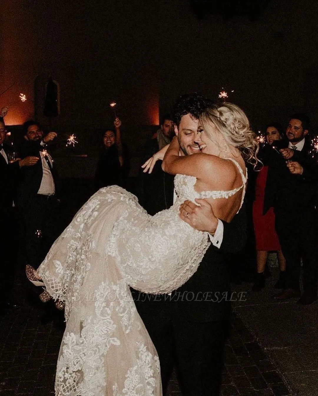Gorgeous Ivory Off-the-shoulder Lace Long Sleeves Wedding Dress