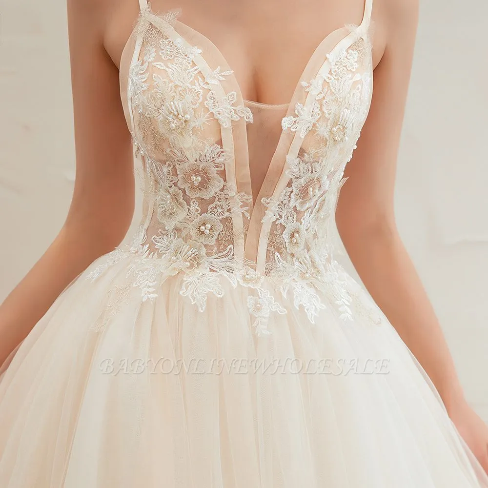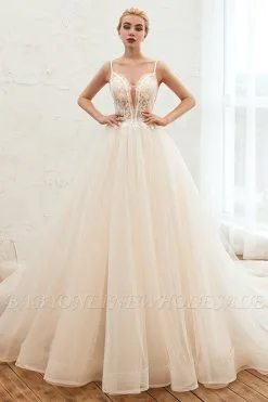 Try the cheap yet gorgeous Boho Spaghetti Straps Ivory Ball Gown Wedding Dress | Romantic Bridal Gowns for Sale to wow your wedding guests with Babyonlinewholesale. The V-neck,Spaghetti Straps design and exqusite handwork, and the Floor-length wedding dress with Lace,Beading,Pearls to provide the cool and simple look for summer wedding.