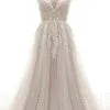 Spaghetti Straps Simple Wedding Dress With Layers Tulle Lace Appliques