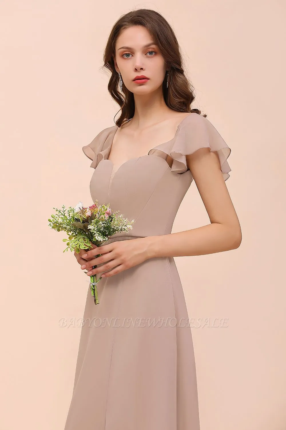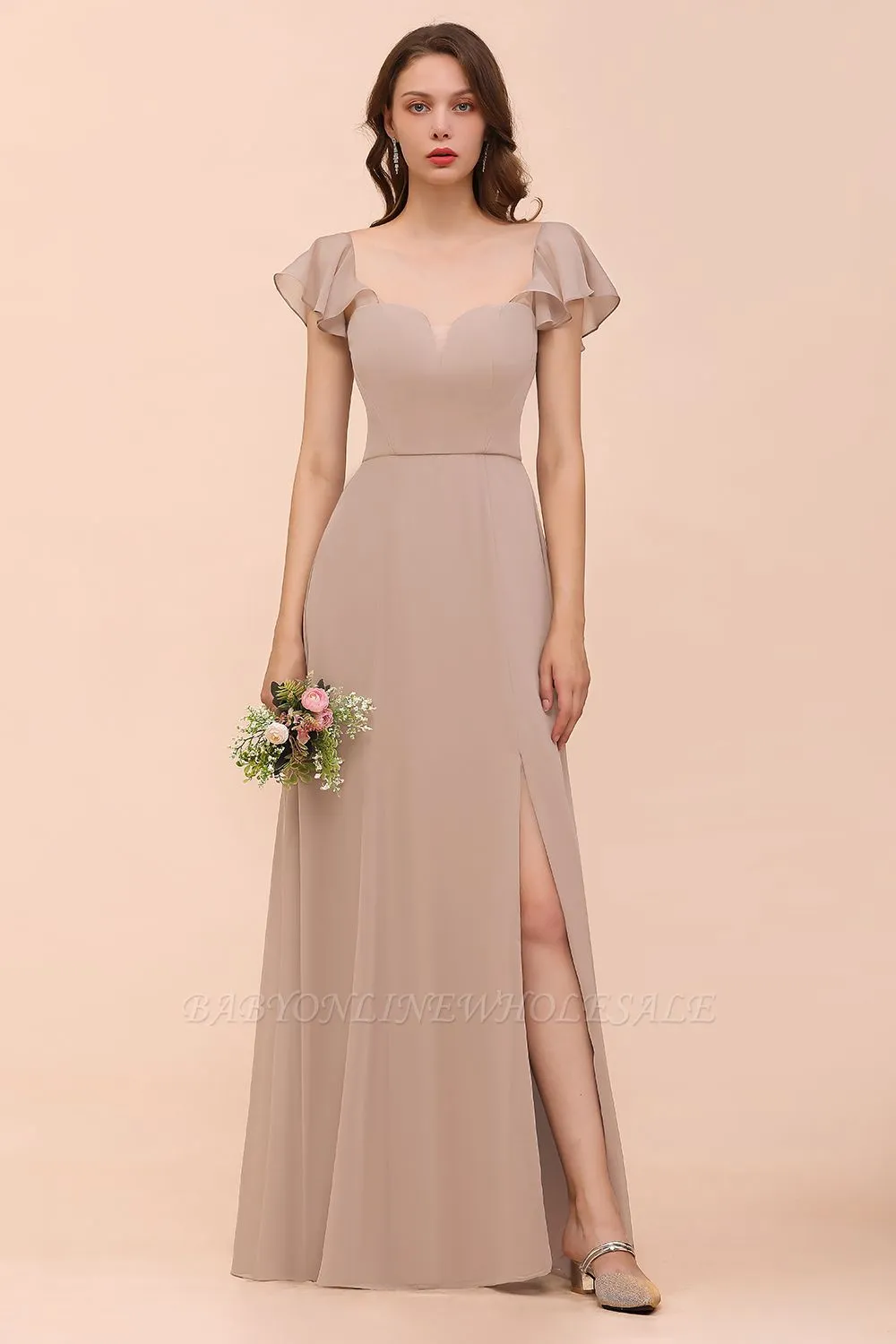 | product name | Cap Ruffle Sleeves Bridesmaid Dress with Side Slit |