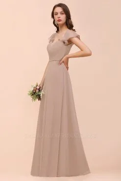The gorgeous Cap Ruffle Sleeves Bridesmaid Dress with Side Slit will stun every girl. The 100D Chiffon dress will add extra elegance to your wholesale look.
