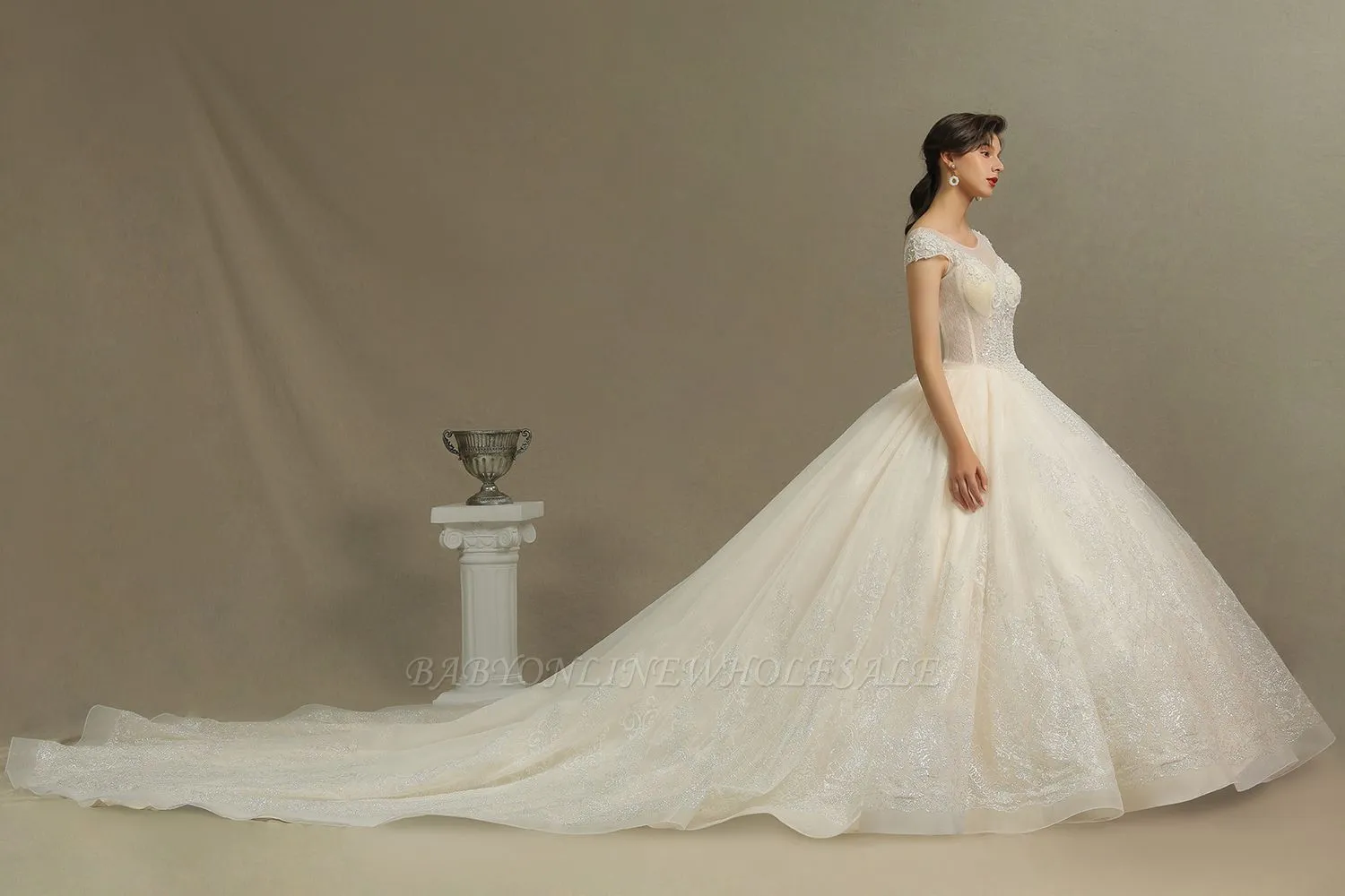 Looking for in Tulle, A-line style, and Gorgeous Lace work? Babyonlinewholesale has all covered on this elegant Cap Sleeve Aline Cathedral wedding dress Tulle Lace Appliques Garden Bridal Gown.