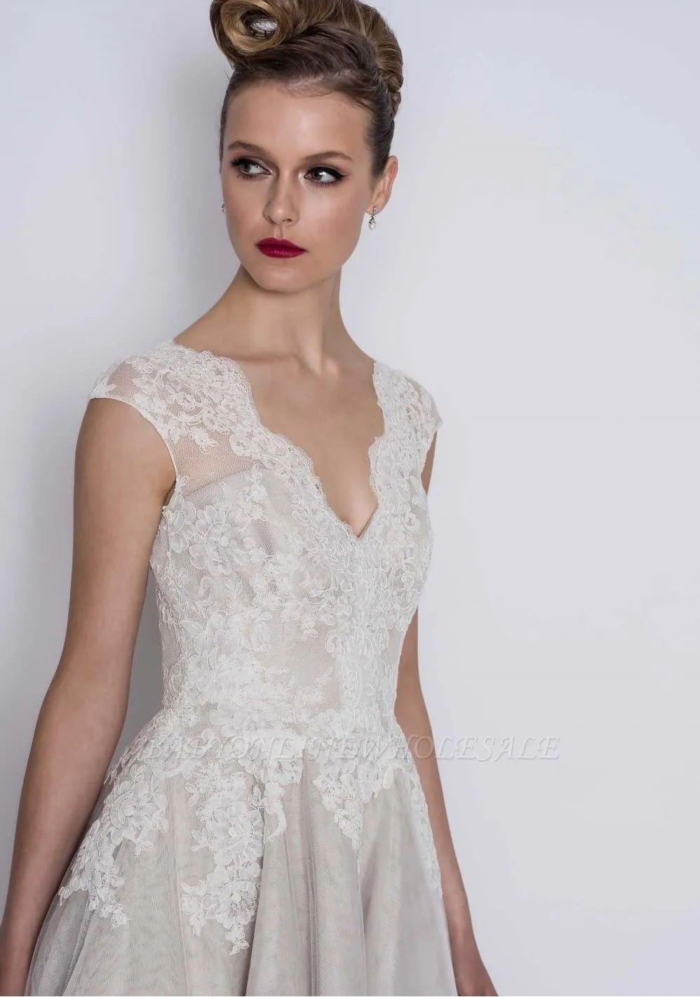| product name | Cap sleeves V-neck Princess Short Ankle length Wedding Dress |