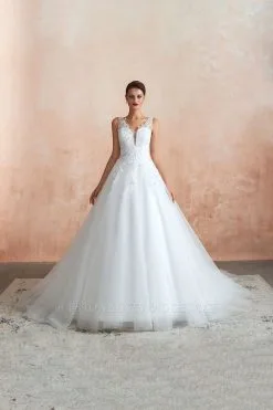Elegant Floral Lace Wedding Dress Aline Simple Bridal Dress Sleeveless