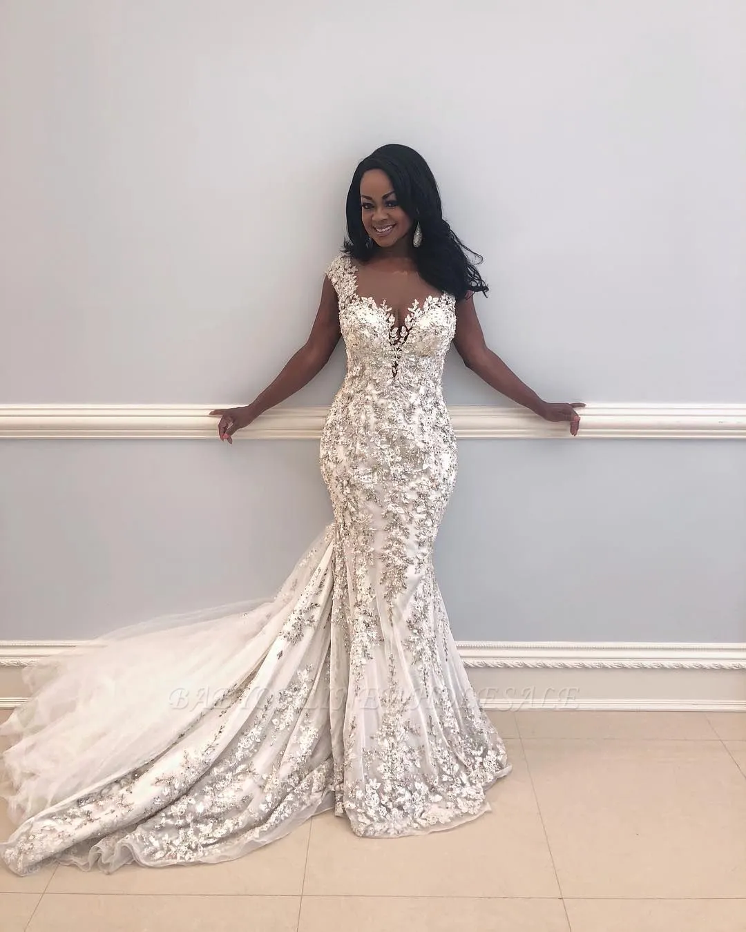 | product name | Chaeming Cap Sleeve Mermaid Wedding Gowns, 2021 Lace Appliques Slim Bridal Gowns |