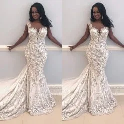 Romantic Sleeveless Lace Mermaid Wedding Dresses Straps Bridal Dress
